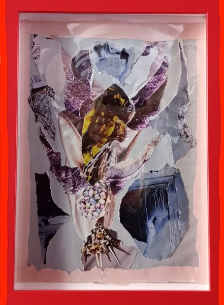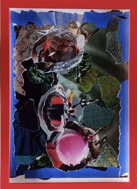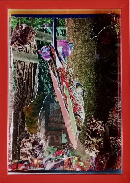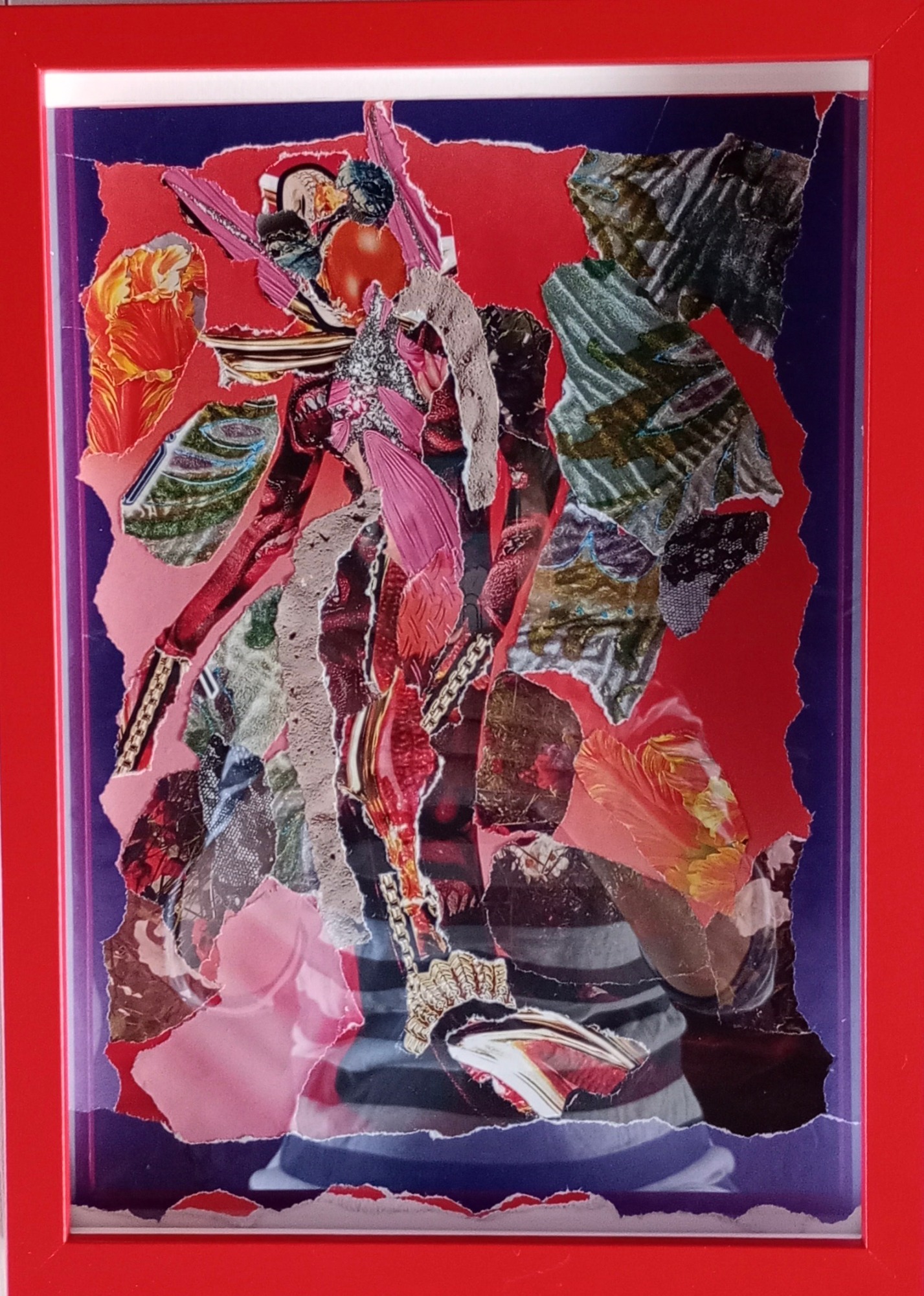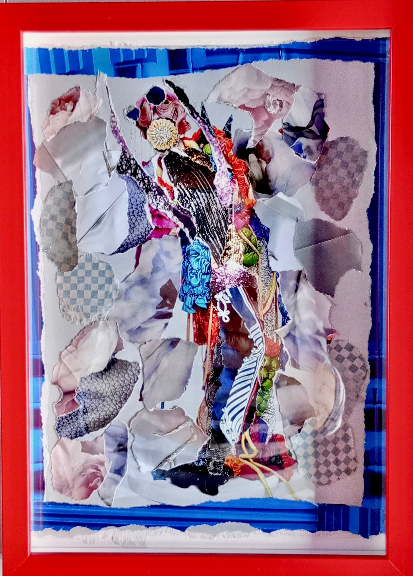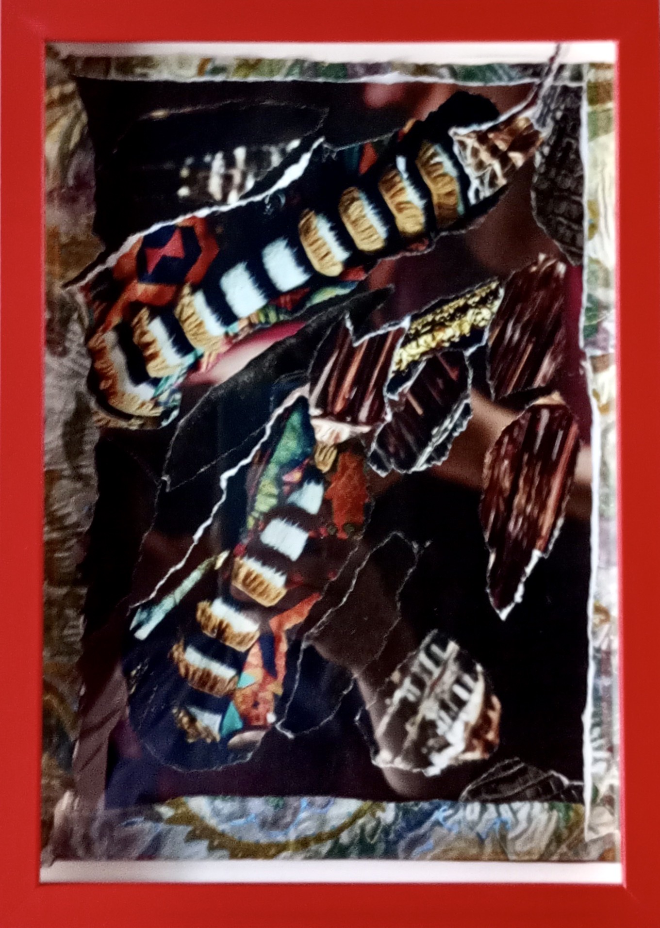Papier-Gemälde, 28 x 21 cm, rot gerahmt