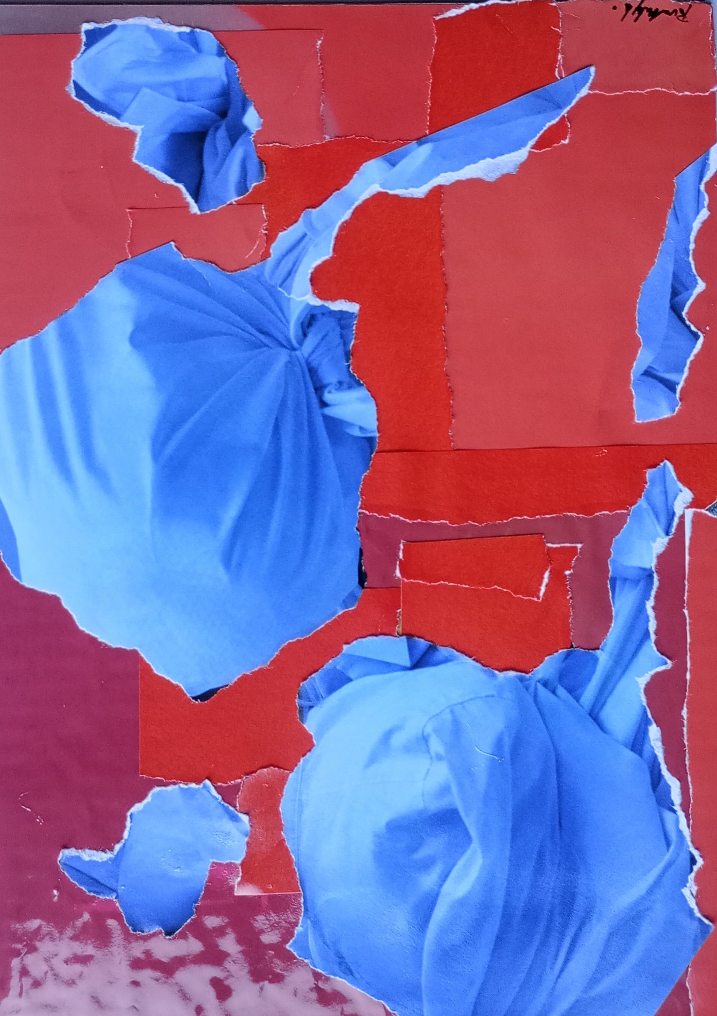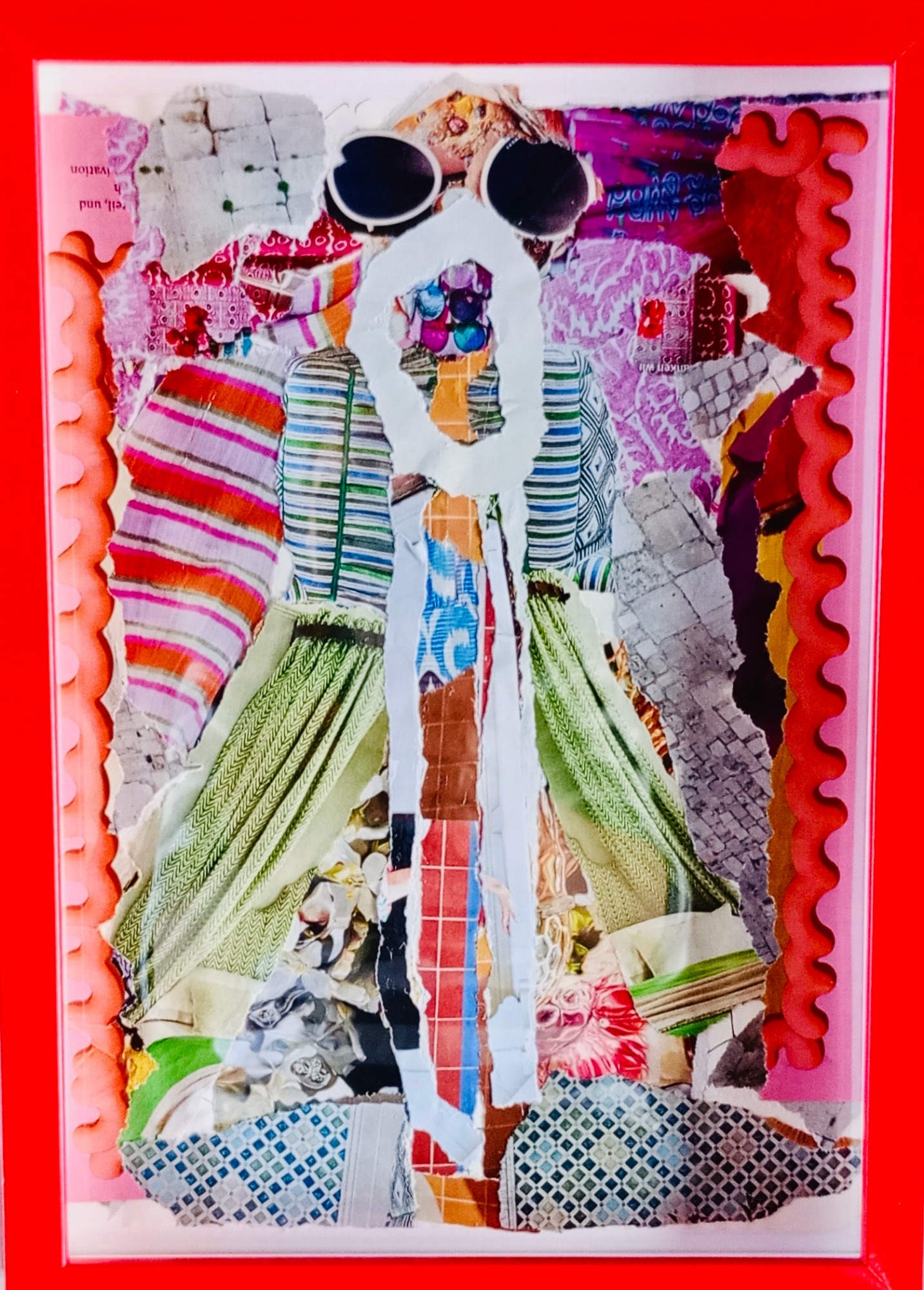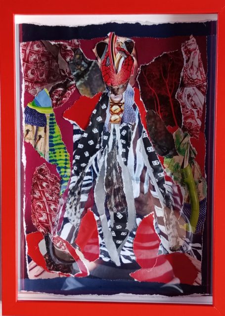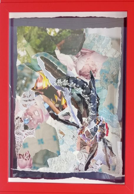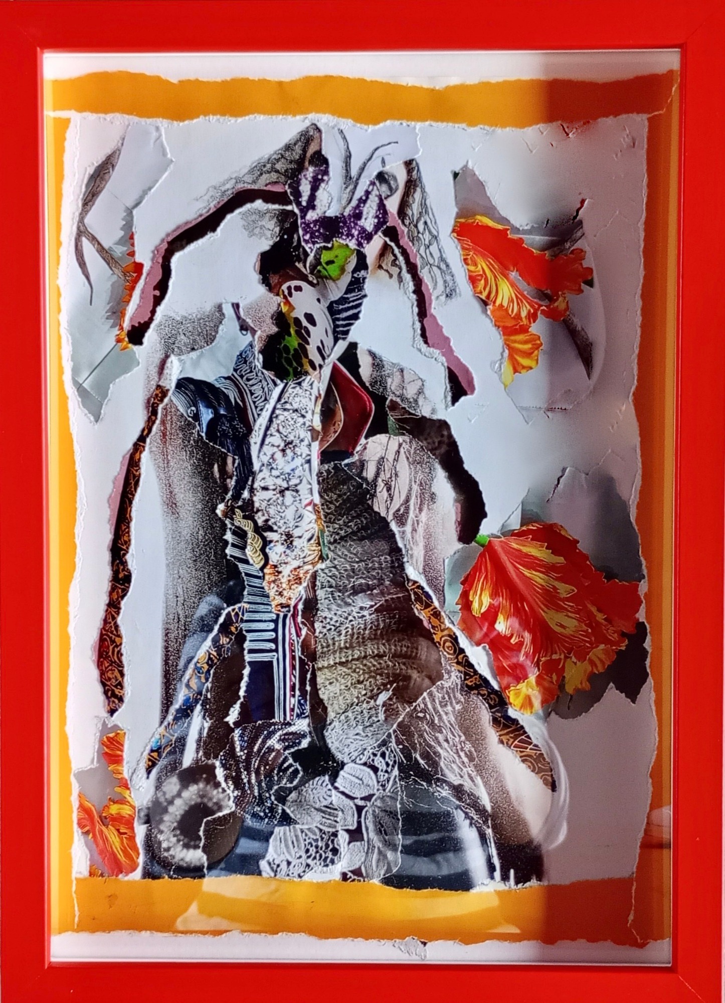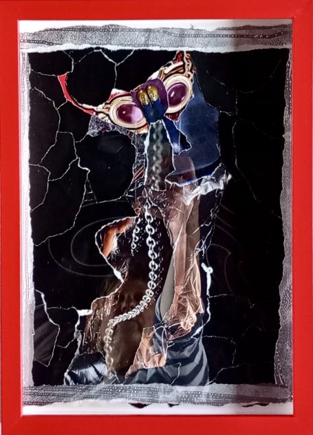 Papier-Gemälde, 28 x 21 cm, rot gerahmt