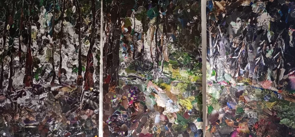 Papier-Malerei, montiert auf MDF, 125 x 255 cm, 3-teilig